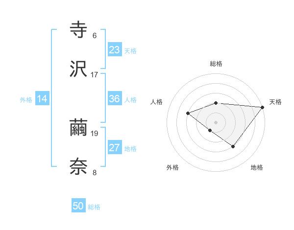 寺沢 繭奈さんを姓名の画数から五運を鑑定