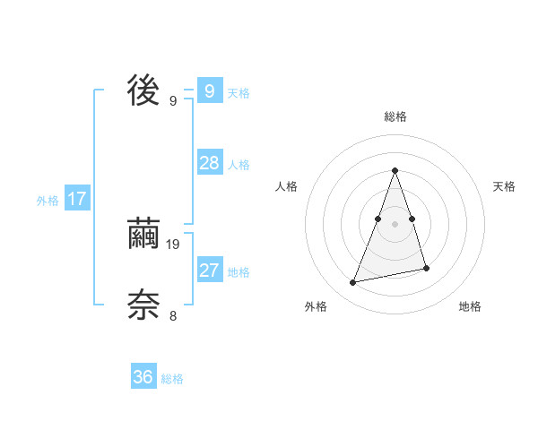 後 繭奈さんの地格は27画の3点!