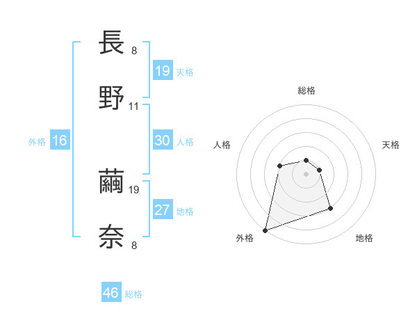 長野 繭奈さんの総格は46画の1点