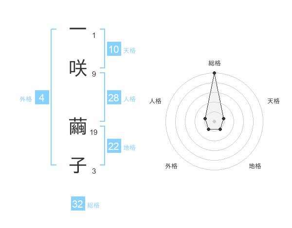 一咲 繭子さんを姓名の画数から五運を鑑定