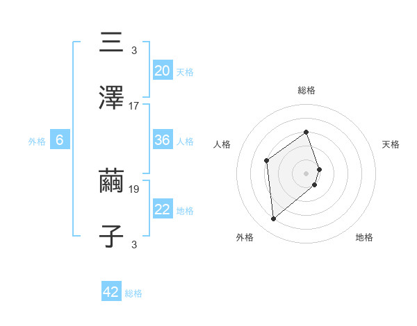 三澤 繭子さんを姓名の画数から五運を鑑定
