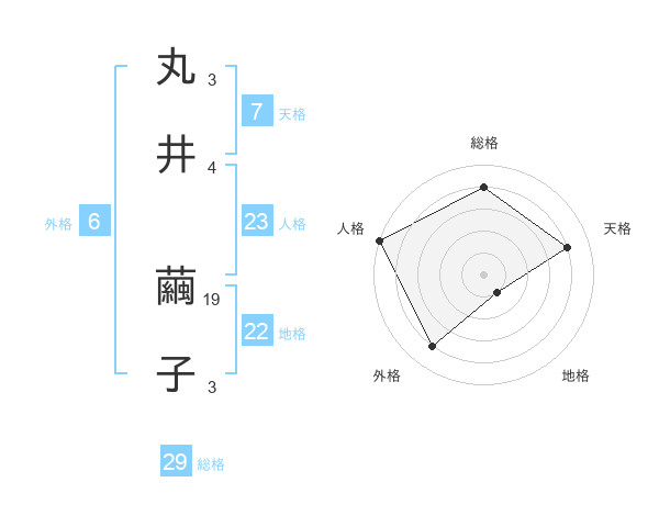丸井 繭子さんの総格は29画の4点!