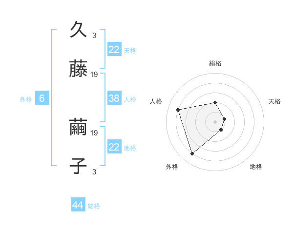 久藤 繭子さんを姓名の画数から五運を鑑定