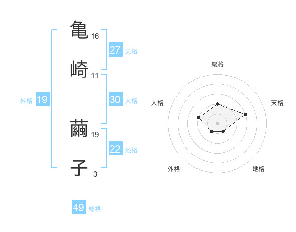 亀崎 繭子さんの総格は49画の2点!