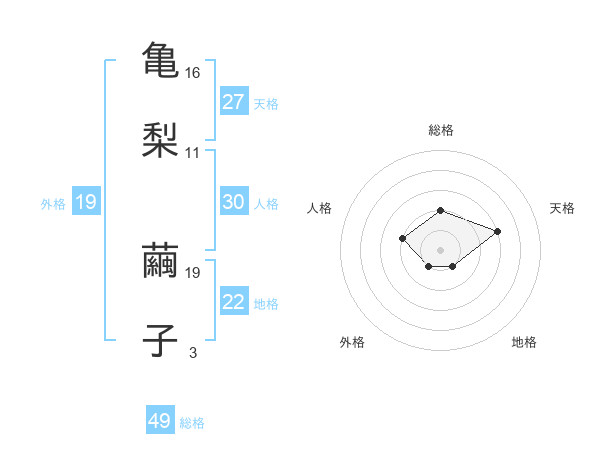 亀梨 繭子さんの総格は49画の2点!