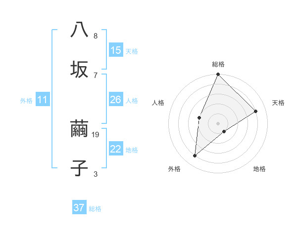 八坂 繭子さんの総格は37画の5点!