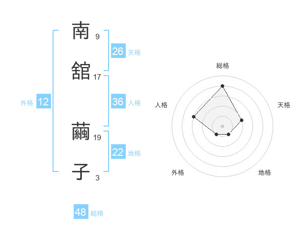 南舘 繭子さんの総格は48画の4点!