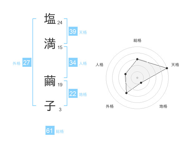 塩満 繭子さんの外格は27画の3点!