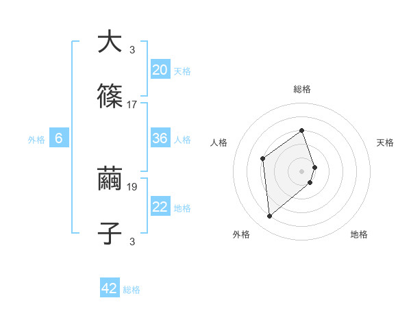 大篠 繭子さんの総格は42画の3点!