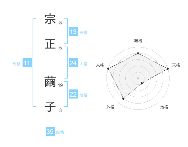 宗正 繭子さんを姓名の画数から五運を鑑定