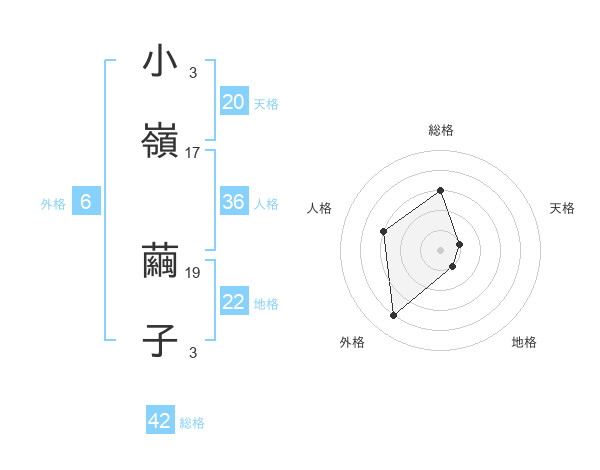 小嶺 繭子さんの天格は20画の1点!