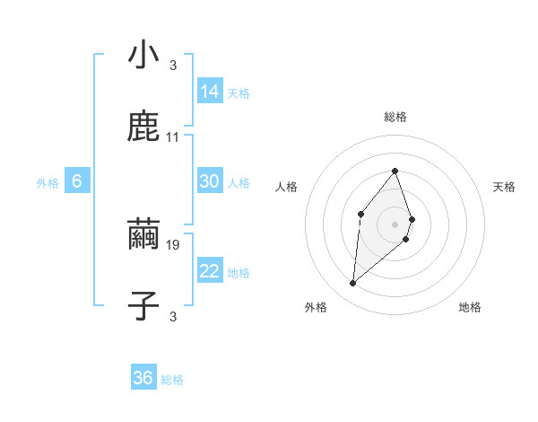 小鹿 繭子さんの総格は36画の3点!