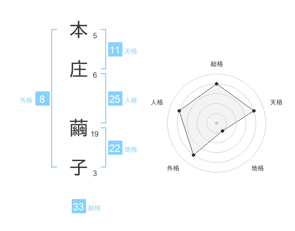 本庄 繭子さんを姓名の画数から五運を鑑定