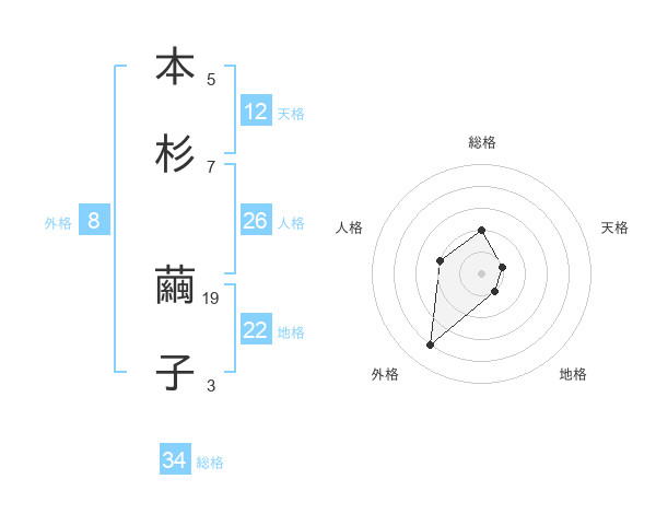 本杉 繭子さんを姓名の画数から五運を鑑定