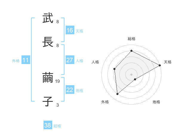 武長 繭子さんの総格は38画の4点!