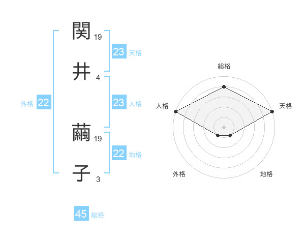 関井 繭子さんの天格は23画の5点!