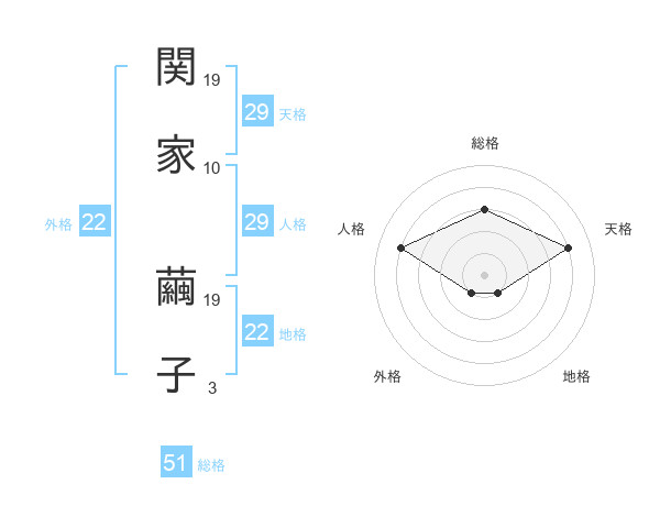 関家 繭子さんの総格は51画の3点!