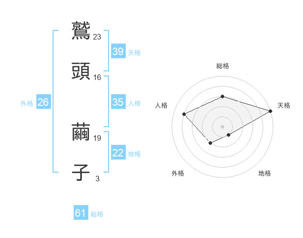 鷲頭 繭子さんの総格は61画の3点!