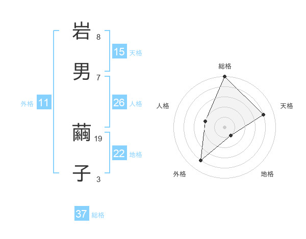 岩男 繭子さんを姓名の画数から五運を鑑定