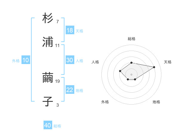 杉浦 繭子さんを姓名の画数から五運を鑑定