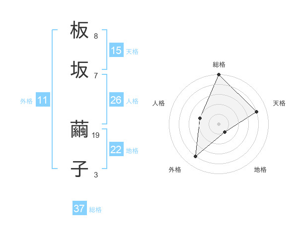 板坂 繭子さんの総格は37画の5点!