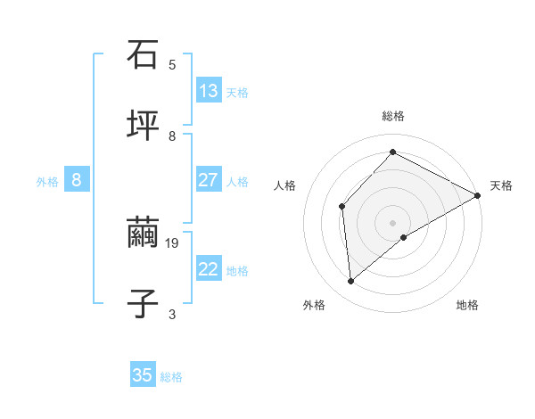 石坪 繭子さんを姓名の画数から五運を鑑定