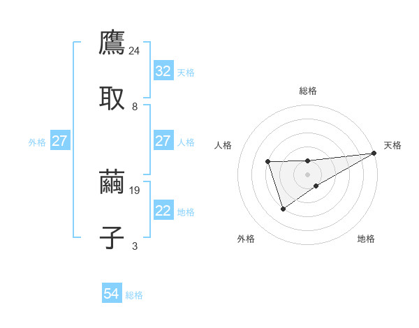 鷹取 繭子さんの天格は32画の5点!