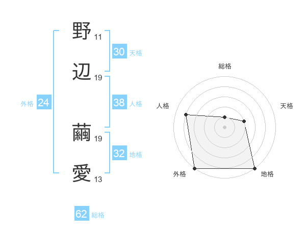野辺 繭愛さんの外格は24画の5点!