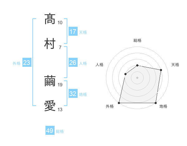 髙村 繭愛さんを姓名の画数から五運を鑑定