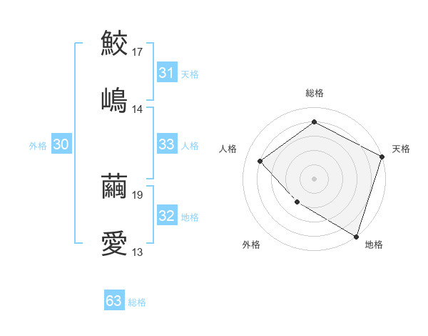 鮫嶋 繭愛さんの総格は63画の4点!