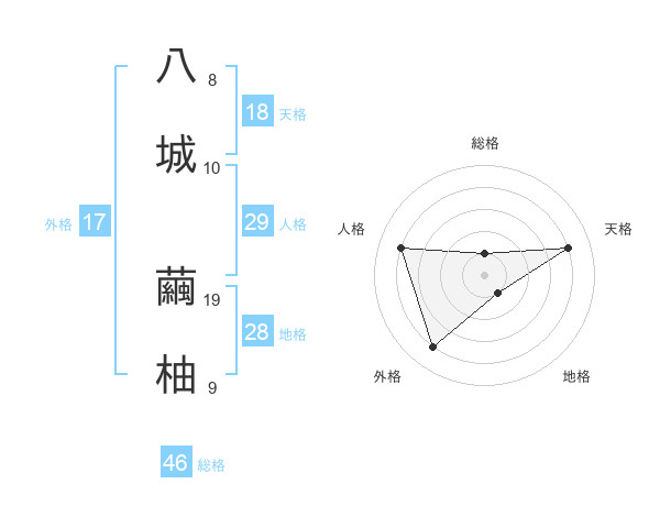 八城 繭柚さんの天格は18画の4点!