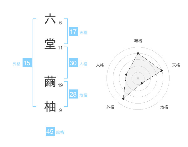 六堂 繭柚さんの総格は45画の4点!