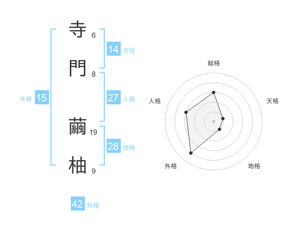 寺門 繭柚さんを姓名の画数から五運を鑑定