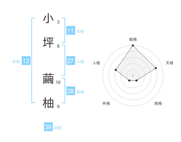 小坪 繭柚さんの総格は39画の5点!