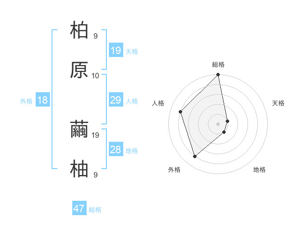 柏原 繭柚さんの総格は47画の5点!