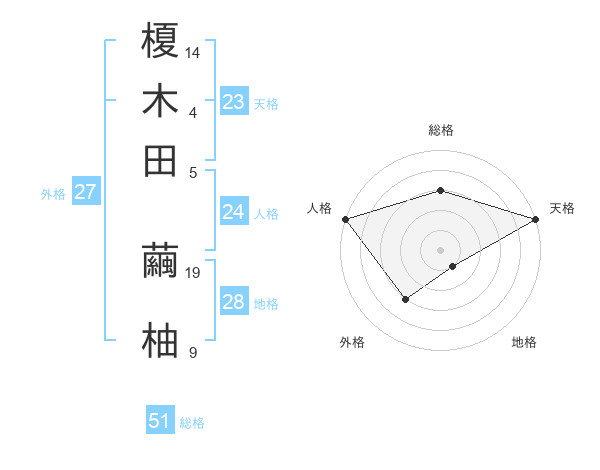 榎木田 繭柚さんの総格は51画の3点!
