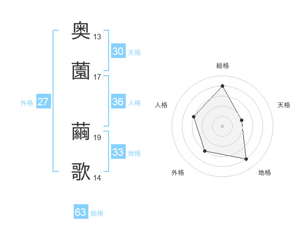 奥薗 繭歌さんの地格は33画の4点!