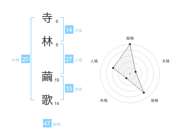 寺林 繭歌さんの総格は47画の5点!