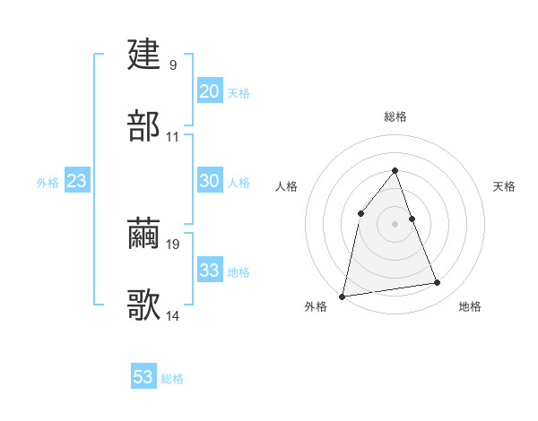 建部 繭歌さんの総格は53画の3点!