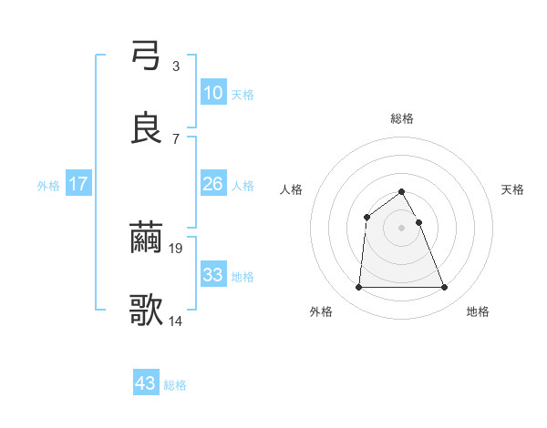 弓良 繭歌さんを姓名の画数から五運を鑑定