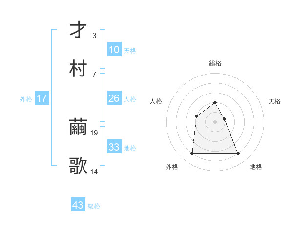 才村 繭歌さんの総格は43画の2点!