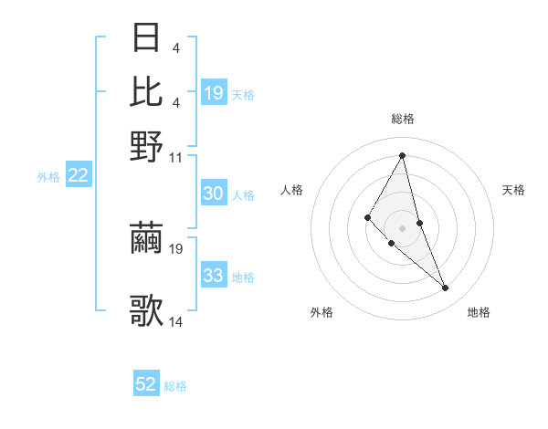 日比野 繭歌さんを姓名の画数から五運を鑑定