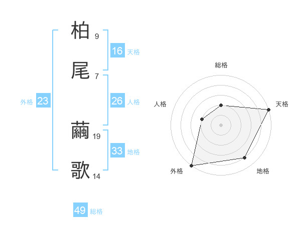柏尾 繭歌さんの総格は49画の2点!