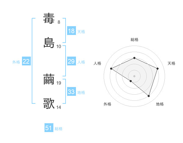 毒島 繭歌さんを姓名の画数から五運を鑑定