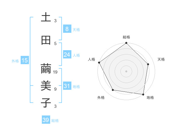 土田 繭美子さんを姓名の画数から五運を鑑定