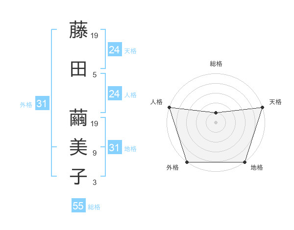 藤田 繭美子さんの天格は24画の5点!