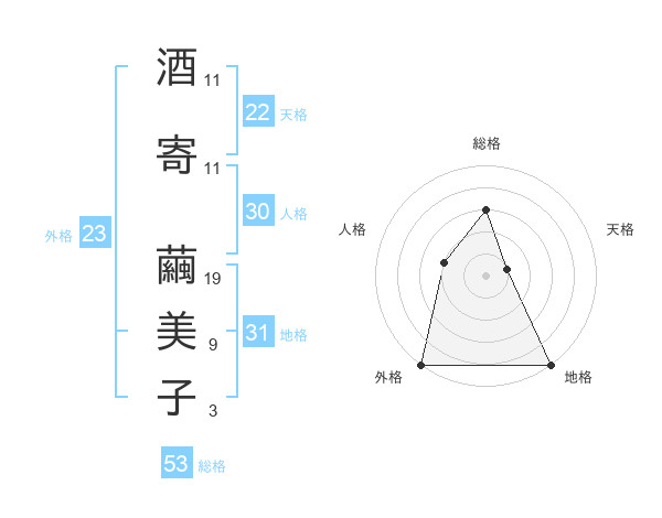 酒寄 繭美子さんを姓名の画数から五運を鑑定