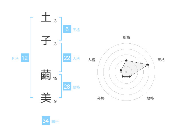 土子 繭美さんの総格は34画の2点!