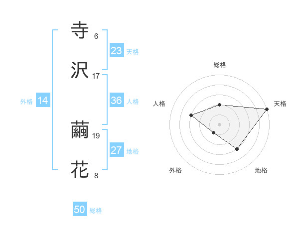 寺沢 繭花さんを姓名の画数から五運を鑑定