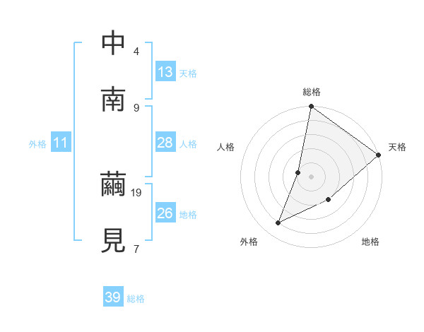 中南 繭見さんの総格は39画の5点!